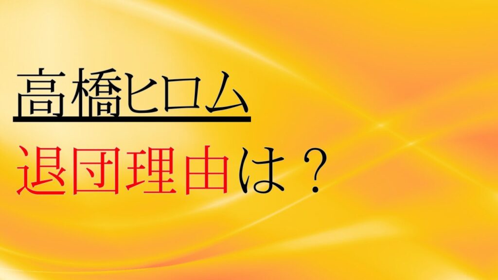 高橋ヒロムの退団理由はなぜ?もう一つの新しい夢は海外進出?