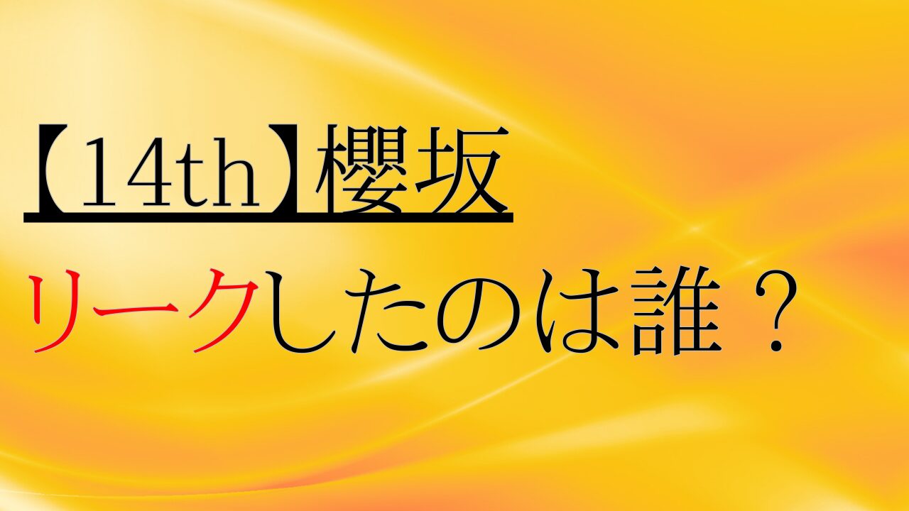 【14th】櫻坂46をリークしたのは誰?